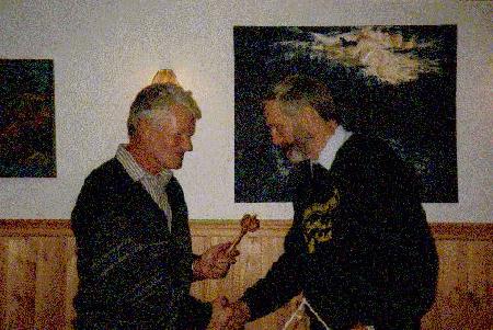 Jag tackar för uppvaktningen som kom mig till del med diplom och blomsterkvast vid 1997 års årsmöte, och när jag med varm hand fick överräcka ordförandeklubban till Gert Claesson.